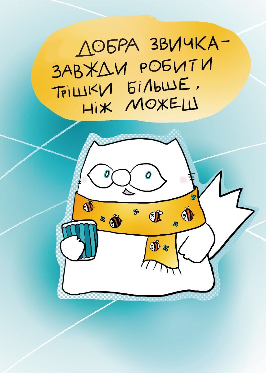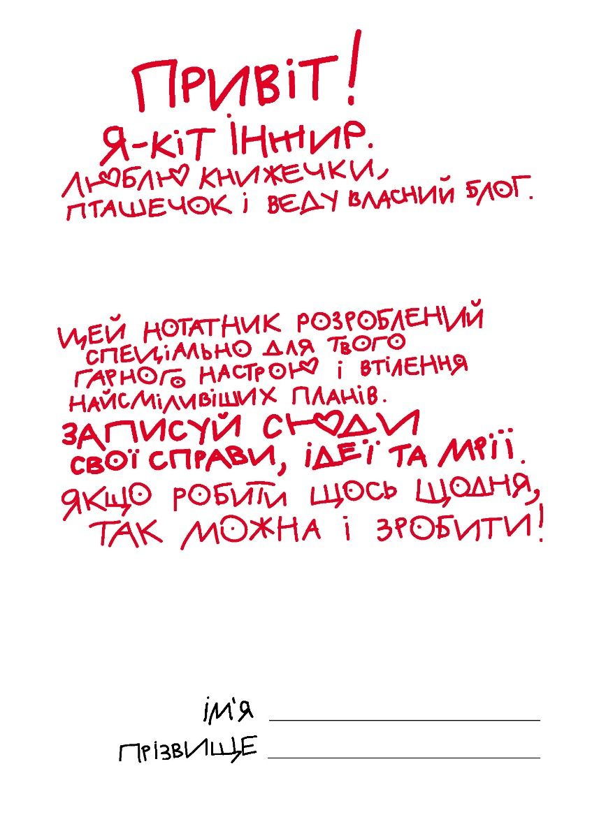 «Нотатник кота Інжира» – найкращий помічник у плануванні на шляху до успіху та здійсненні мрій. Записуй у ньому плани на тиждень чи місяць, позначай важливі дати, занотовуй цікаві ідеї й щодня насолоджуйся котиком Інжиром. Тепер ніщо не завадить здійсненню твоїх мрій, адже «Ніколи нічого не пізно» ‒ стверджує кіт Інжир.